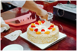 在生日会过程中,公司领导卜总讲话对员工表示了感谢和慰问,并为大家准备了蛋糕、水果、饮料和生日礼品,员工们欢聚在一起,共唱生日歌、齐许生日愿、互谈同事情,现场气氛一片热烈!